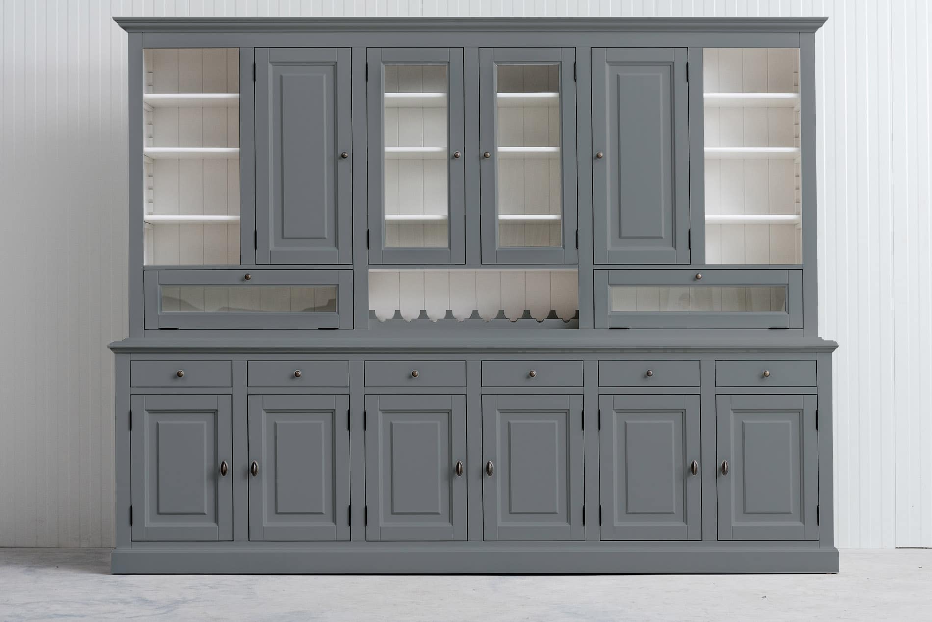 De buffetkast bestaat uit twee delen, een boven- en een onderdeel. Standaard heeft de buffetkast een dekkende lak .