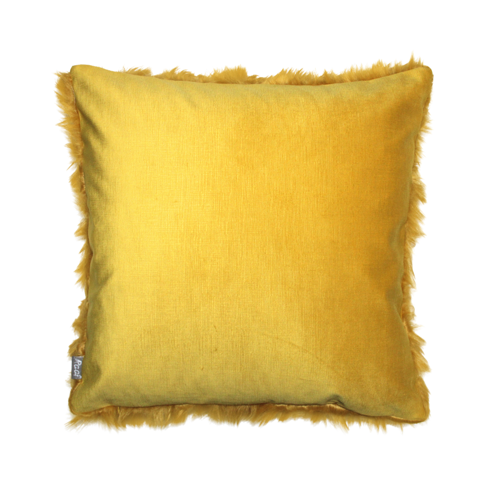 Dit sierkussen Fur geel is van het merk Raaf. Het is gemaakt van een zachte harige stof die op bont lijkt. De achterzijde is gemaakt van een effen fris gele zachte meubelstof. De Hoes is gemaakt in Europa en de kussen-vulling is gemaakt in Nederland van 100% biologisch katoenen tijk gevuld met 100% gerecycled dons en veren.