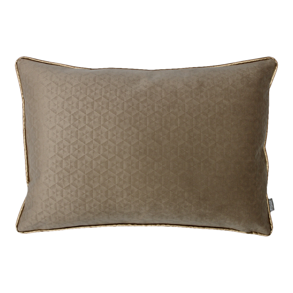 Dit sierkussen Joyce beige is van het merk Raaf. Het is gemaakt van zachte slijtvaste rijke velourse meubelstof met “sep”-motief, de bies is van een koperkleurige leder-look stof. De kussen-vulling is gemaakt van 100% gerecycled dons en veren in Nederland. De hoes is gemaakt in Europa.